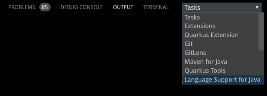 Output related to the Quarkus language server can be read in "Quarkus Tools".