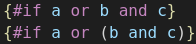 It would be nice to support syntax colouration for all logic inside an if block, including the use of bracket precedence.