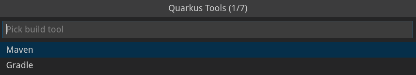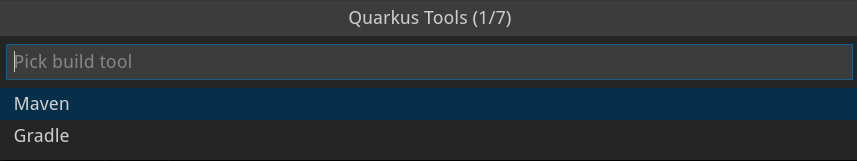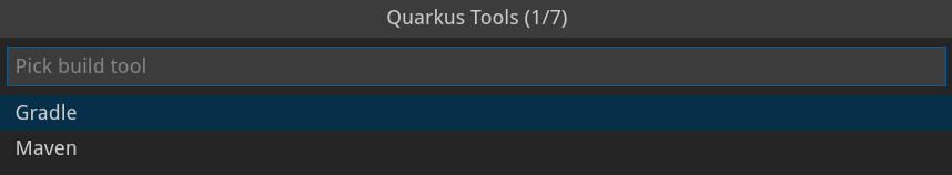 | const quickPickItems = [{label: 'Maven', value: 'MAVEN'}, {label: 'Gradle', value: 'GRADLE'}]; | ||
