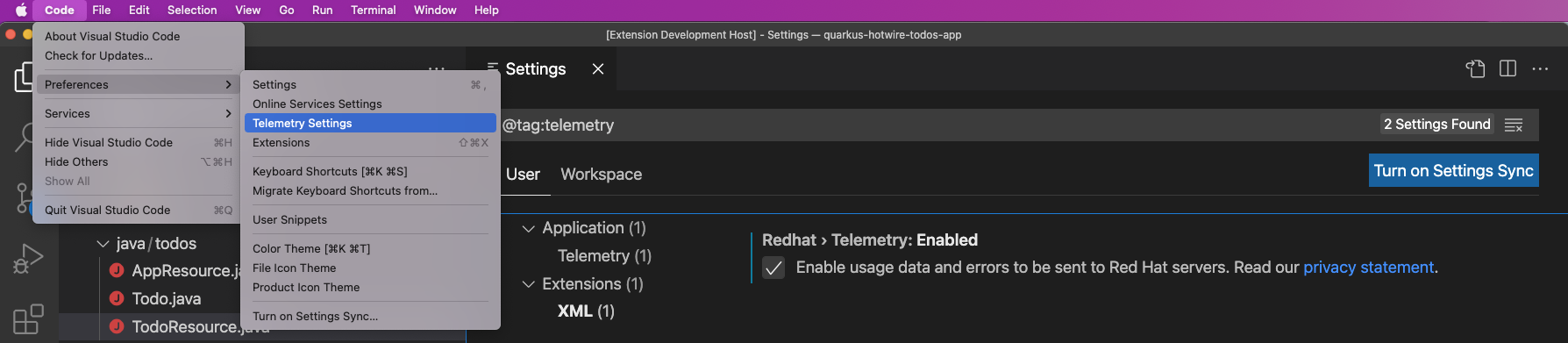 Add 'telemetry' tag to redhat.telemetry.enabled preference#684