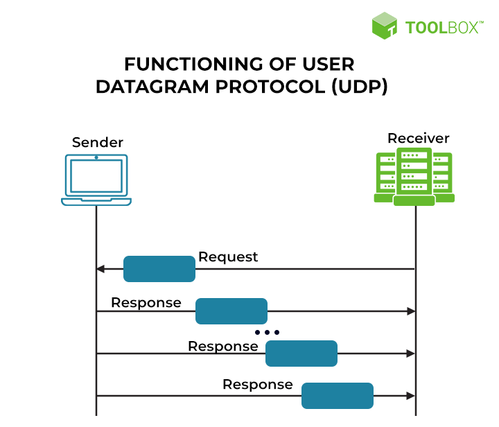 - UDP enables continuous data transmission (i.e., response) without acknowledging or confirming the connection