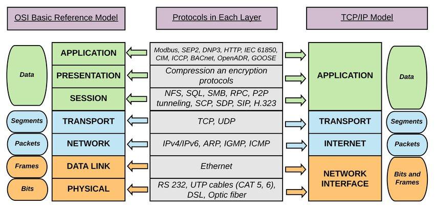 | 4- Transport | Segments (Port) | TCP, UDP | Ensures reliable data delivery | TCP/IP, UDP/IP |