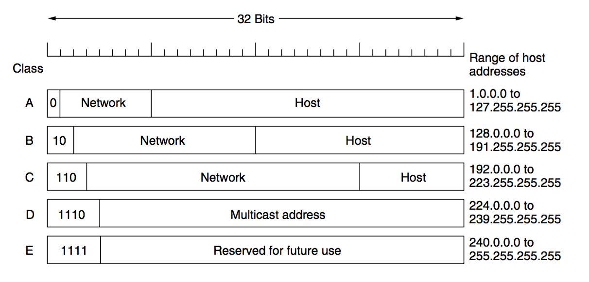 1953年,IP 地址被分为 5 个类别: