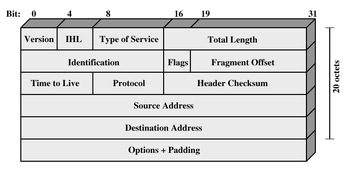 - 起源和目标地址(Source and Destination Addresses):这两个地段都是32比特。标识了这个IP包的起源和目标地址。