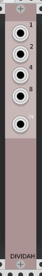 Dividah is a clock frequency divider. IN is the numerator, the 4 outputs (1, 2, 4, 8) are the denominators.