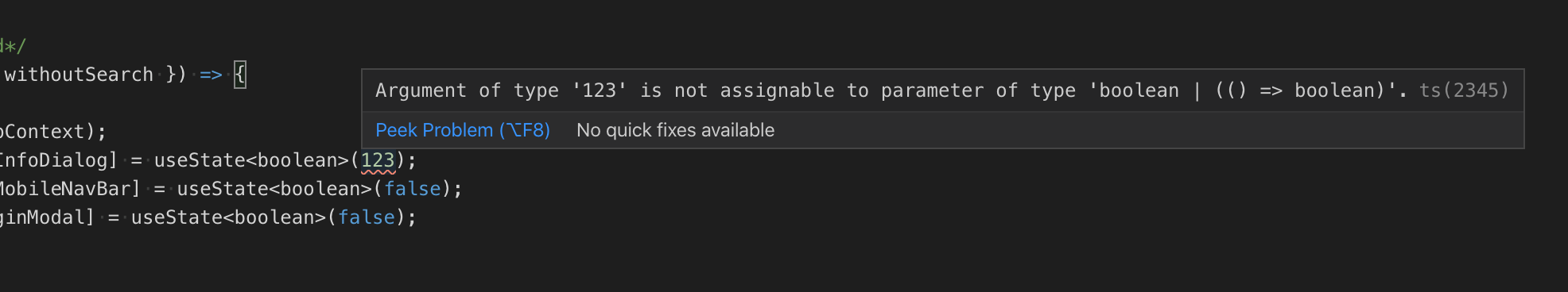 useState<boolean>(true); the type will be just boolean