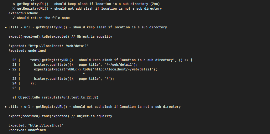 I think tests need to be updated. registry URL should not contain the path, right?