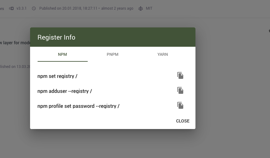 Sorry guys, but, the info dialog is broken. https://github.com/verdaccio/ui/issues/310 I'd suggest a new PR with :