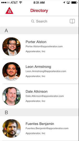 Everyone needs to have quick and easy access to their business contacts. This corporate directory application showcases how you can easily build a high quality, cross platform application using the Appcelerator Mobile Platform.