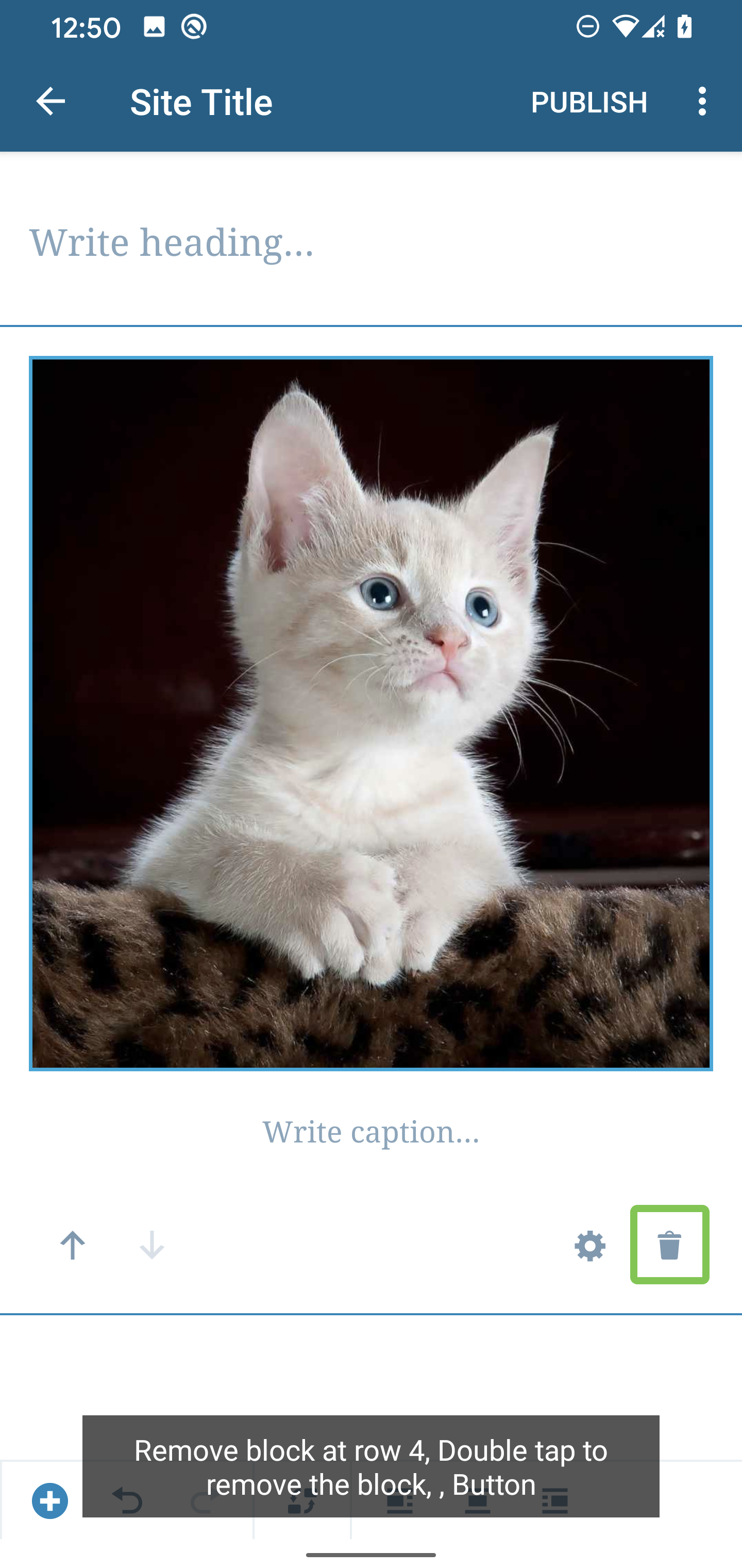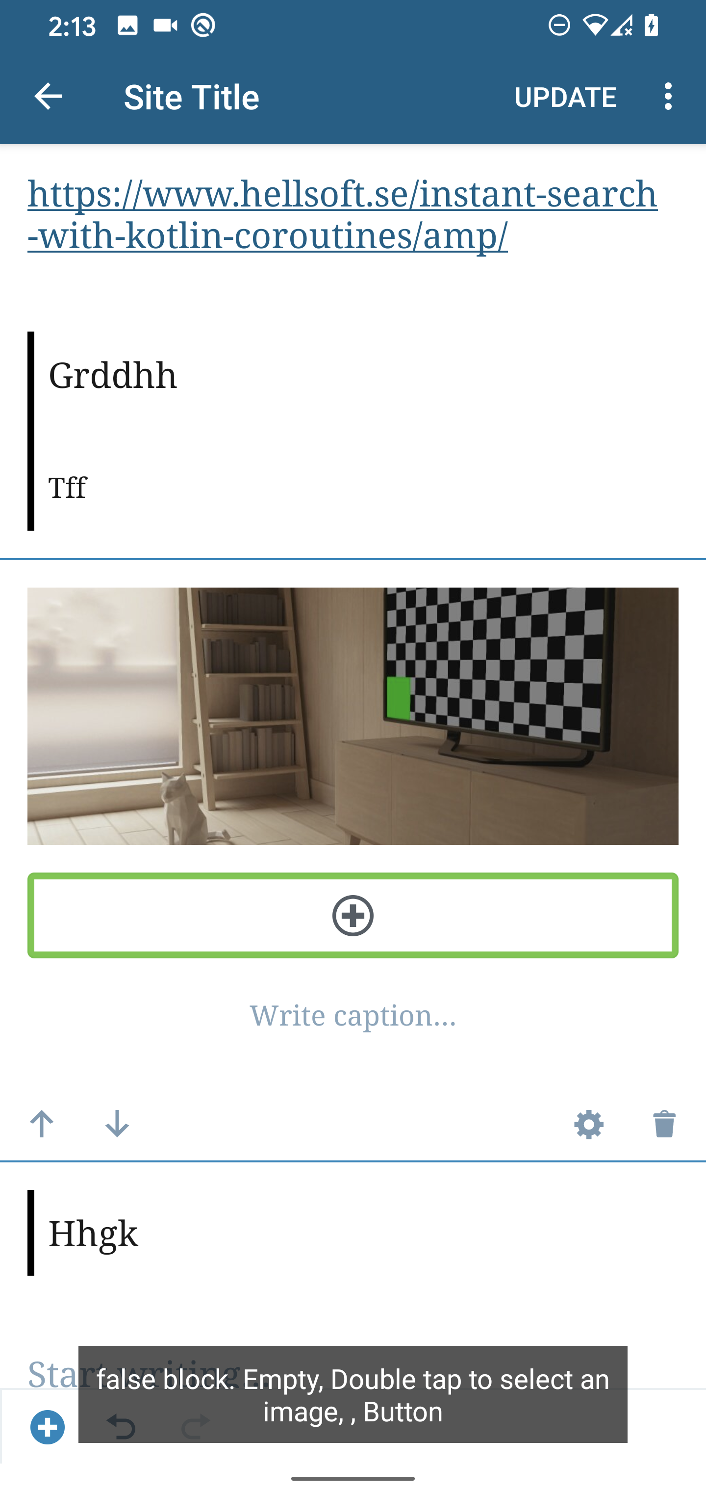 When you select the Add button that allows you to add another image to the gallery it's announced as "false block". It would be better if this is announced as "Add another image,Button"