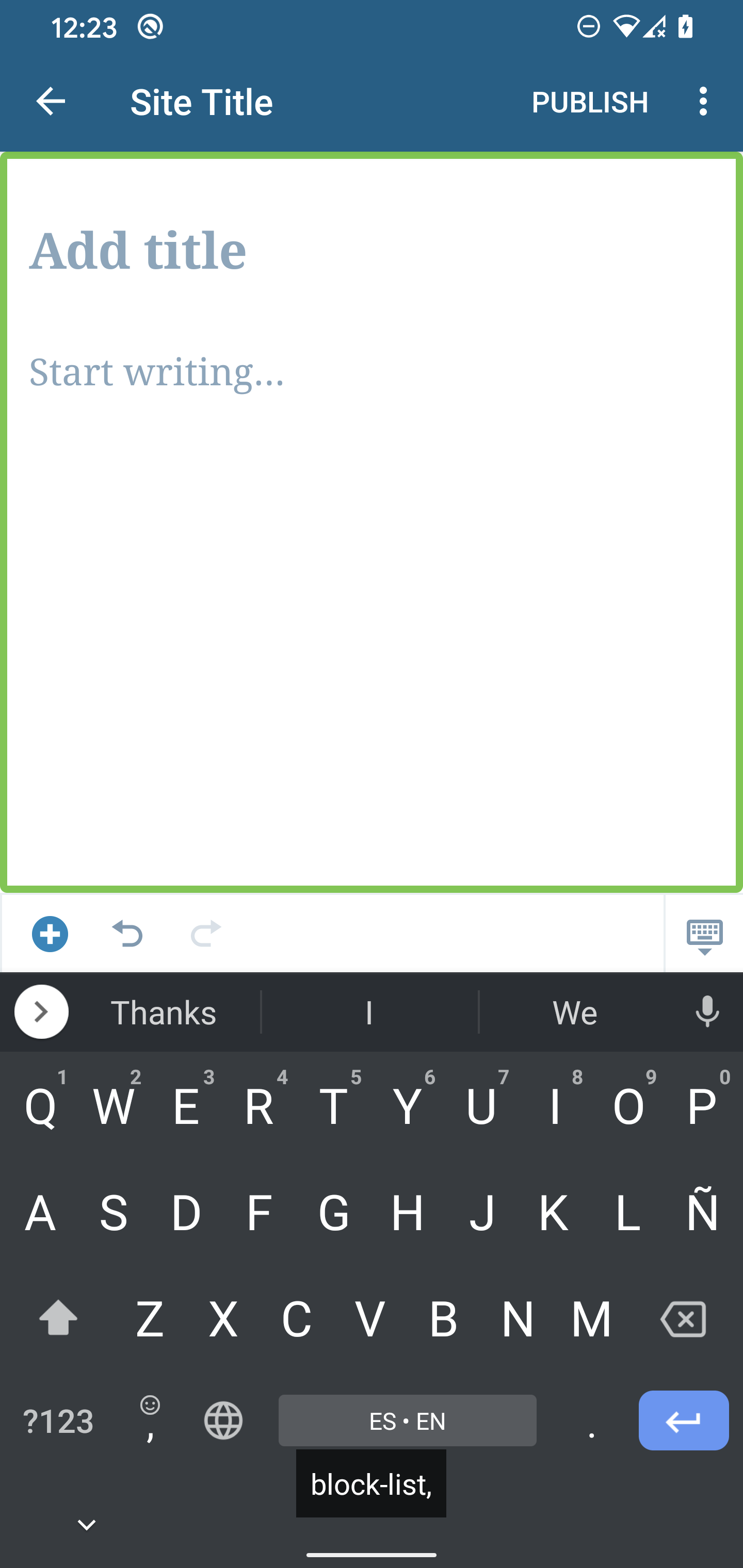 There's an unlabeled element at the end of the list that becomes activated, similarly to iOS this can be disabled since an "Add Block" button already exists for the user.