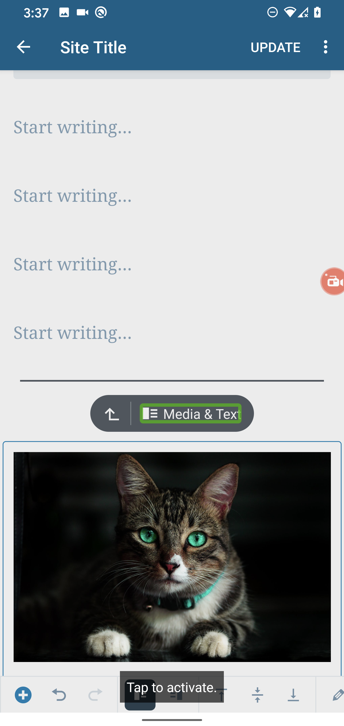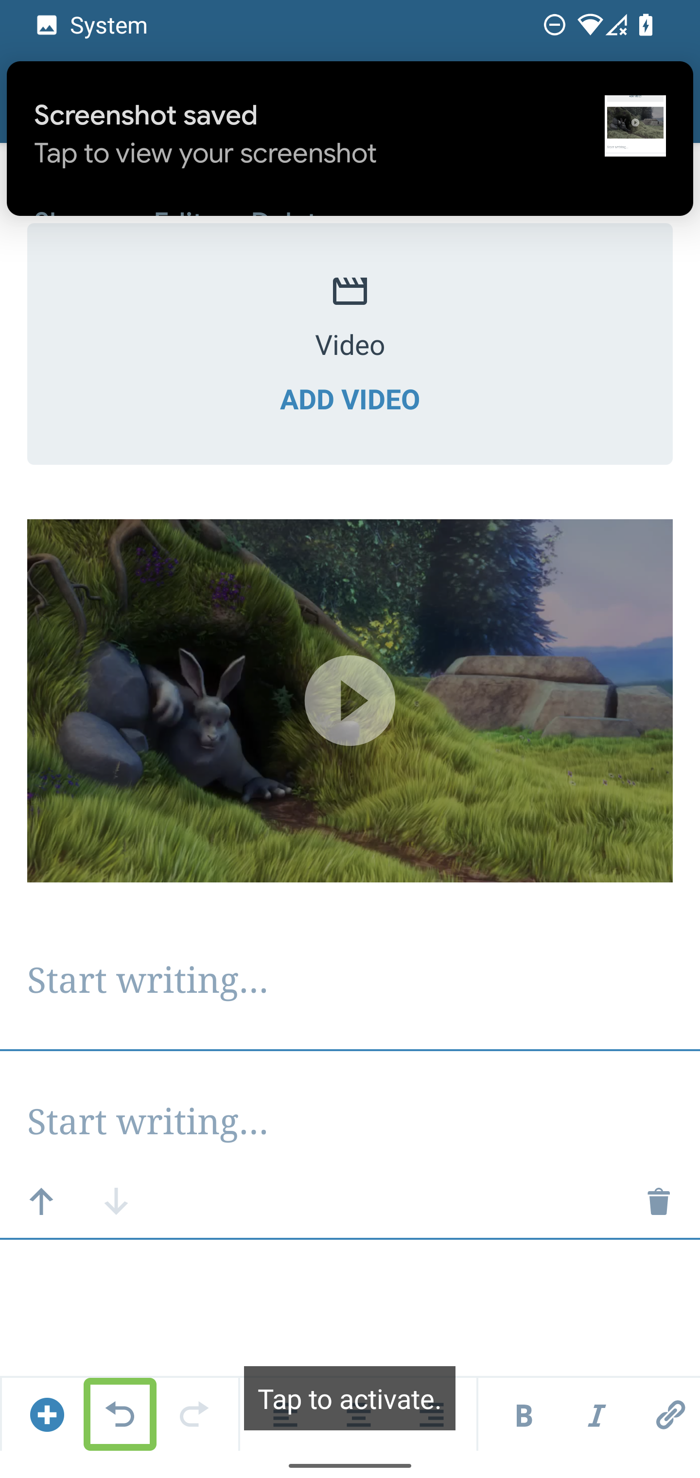 This is a list of concerns we found when auditing TalkBack support in Gutenberg. The audit was done using develop (c9578a0), Google Pixel 4 XL, Android 10.