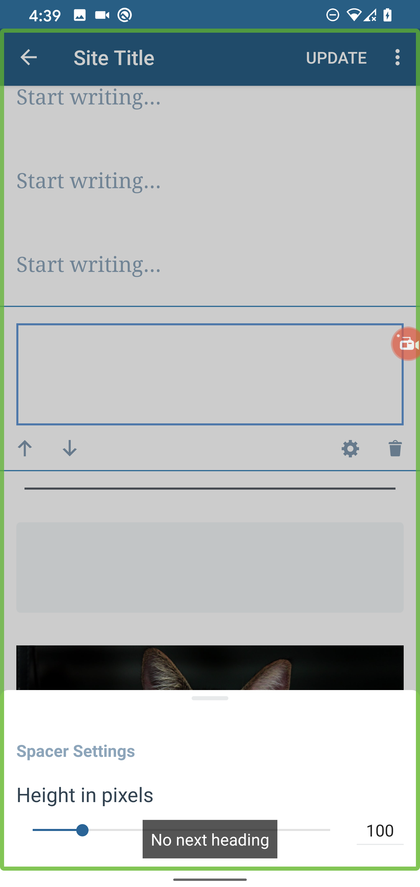 Also when "heading" navigation is enabled the "Spacer Settings" header is ignored. This behavior is also present in Image Settings as well. Headers are created by using the