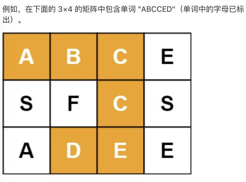 给定一个 m x n 二维字符网格 board 和一个字符串单词 word 。如果 word 存在于网格中,返回 true ;否则,返回 false 。